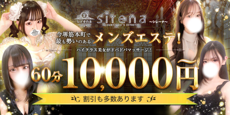 大阪日本橋・堺筋本町のメンズエステ【sirena(シレーナ)】は、厳選された美女セラピストが全身オールハンドで貴方様の身も心も癒します。日本橋駅より徒歩5分、堺筋本町エリアにもルーム増設準備中で、アクセスも良好です。新人セラピストが続々入店しており、18歳〜26歳の若い美女が在籍。毎日楽しめるバラエティ豊かなラインナップで、お客様に最高のリラクゼーション体験をご提供いたします。完全個室の落ち着いた空間で、プライベートな時間をお過ごしください。